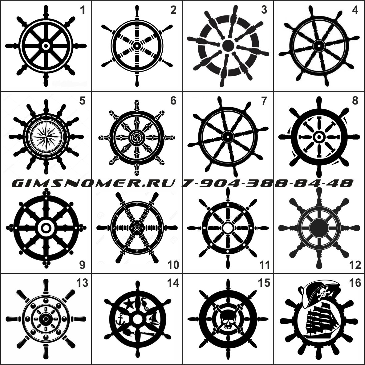 Вы можете выбрать любой из 16 вариантов наклейки штурвал, доступных для заказа.