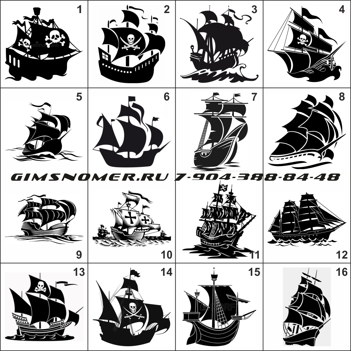 Вы можете выбрать любой из 16 вариантов наклейки Корабль, доступных для заказа.