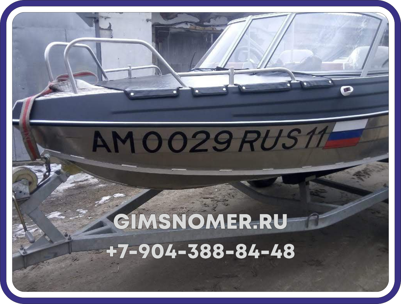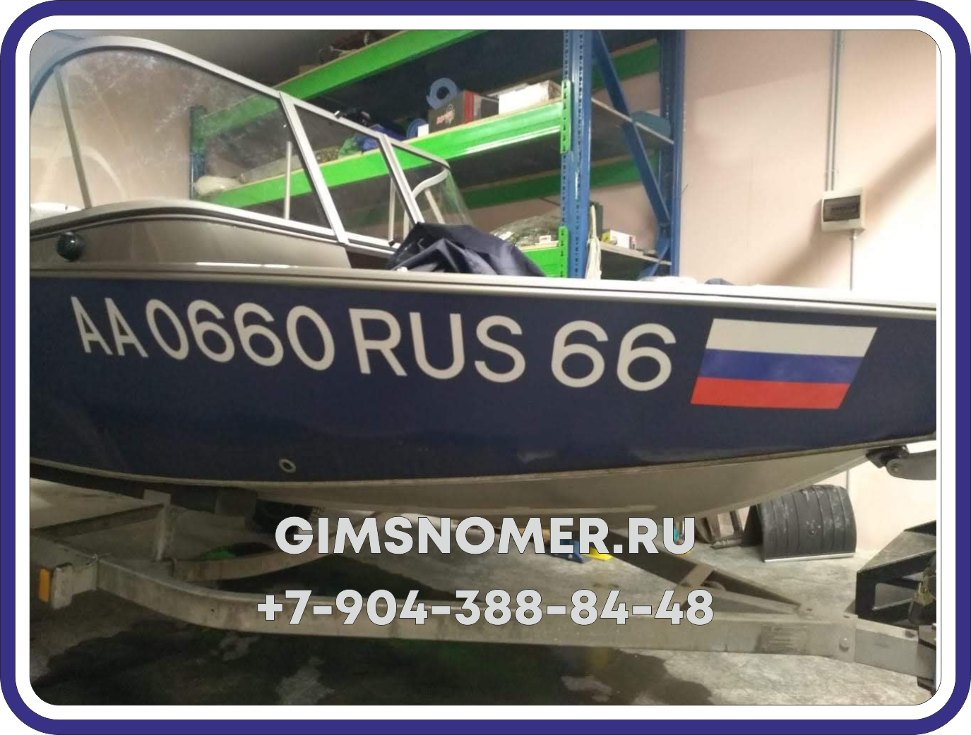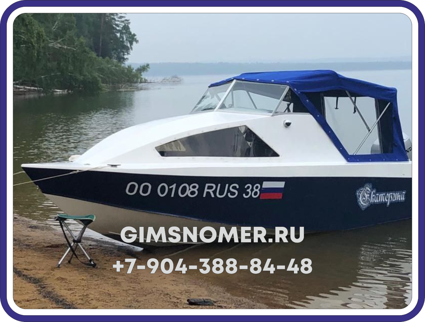 Комплект регистрационного номера ГИМС на лодку, катер или яхту (с жёстким бортом) включает в себя 2 номера и 2 флага РФ из самоклеящейся плёнки на оба борта маломерного судна, в полном соответствии с требованиями ГИМС.